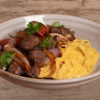 Fideos cocinados con salsa huancaína y Lomo (carne salteada con tomate, cebolla y cilantro).